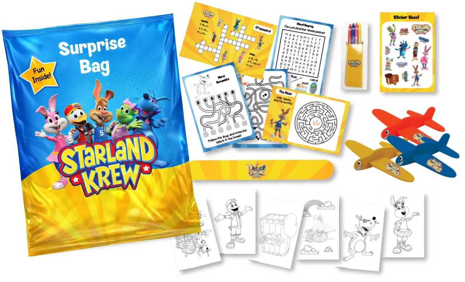 Using the existing client style guide, a cohesive value toy “surprise bag” range was designed and sourced for a leisure resort, created as an easy pick-up item for park retail. The contents were carefully selected to be budget-friendly, safe, and engaging, combining colouring, puzzles, stickers, and simple toys to offer strong play value and keep children entertained during their visit, while remaining commercially viable for in-park shops.