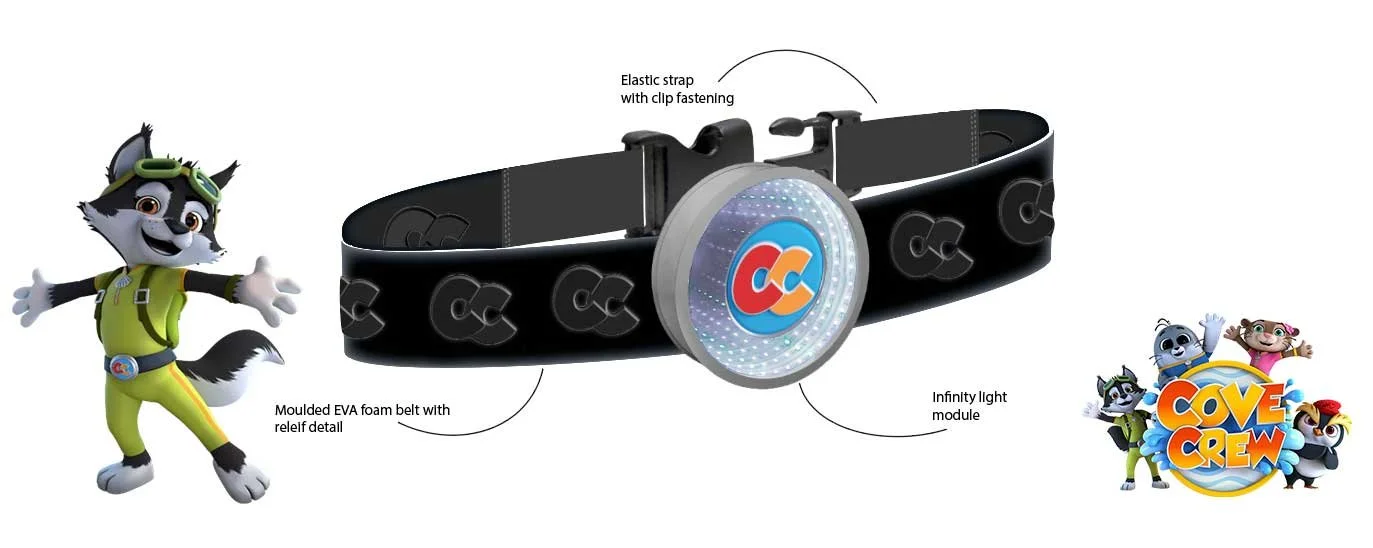 As part of my focus on bringing character worlds to life, I managed the end-to-end development of this signature mascot belt, ensuring it perfectly mirrored the gear worn by all the "Cove Crew" characters. Working closely with a specialist supplier, I sourced a moulded EVA foam belt featuring relief detail to achieve a high-quality, tactile feel that is durable enough for active play. To elevate the item beyond a standard accessory, I introduced an innovation in the form of an infinity light module, which adds significant play value and a "wow" factor for children.